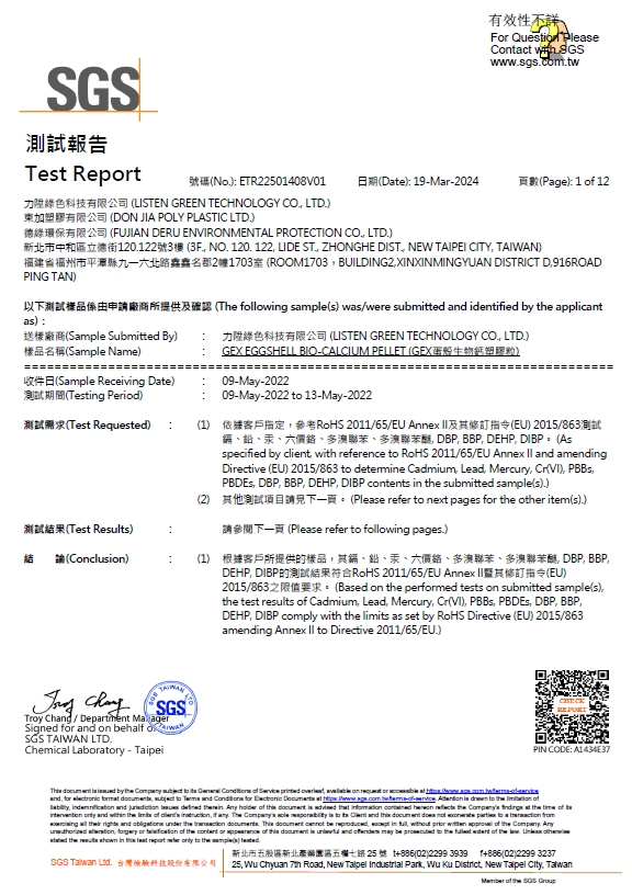 GEX eggshell bio-calcium and the products made with it have passed all tests with flying colors, Below are the lists of our main patents, cetificatiolns, and test results.